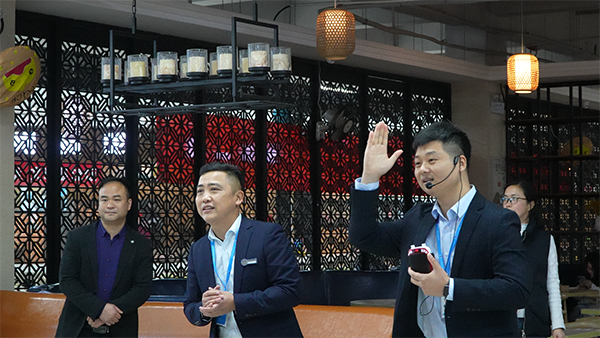 代表团一行认真听取了蓝天膳食商务总监李俊毅的讲解,并就蓝天膳食校园团餐版块运营现状进行沟通交流,对南山餐厅及蓝天膳食运营团队的工作给予充分的肯定。