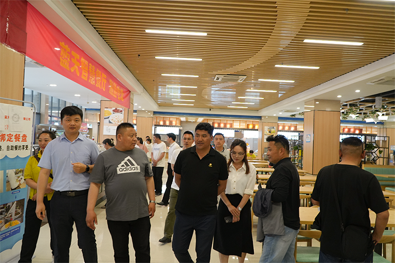 2023年5月16日,西藏那曲比如县教育局领导前往我司绍兴文理学院元培学院蓝天兴越楼美食广场参观调研,蓝天膳食副总经理、高校事业部总经理王月月、商务总监李俊毅等人热情接待来访领导。