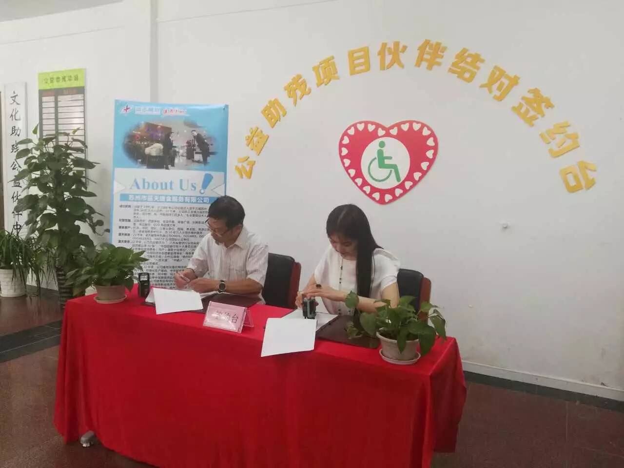 我司董事田亦琪女士和苏州残联陶建华处长在苏州文化助残公益园签署资助《手语评书》的协议,并捐赠善款2万元。