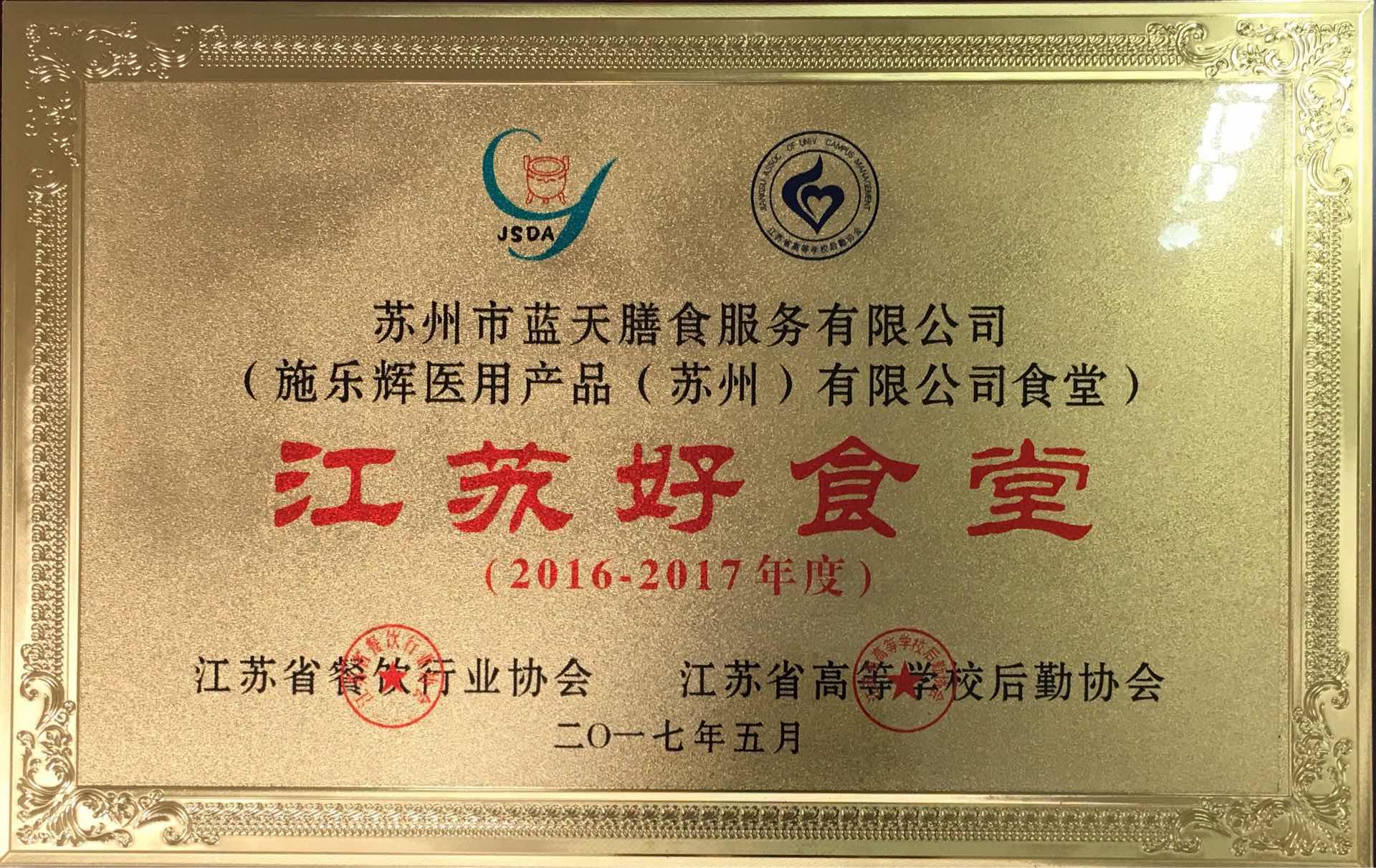 同时,本公司施乐辉医用产品(苏州)有限公司项目点荣获“江苏好食堂”荣誉称号。这一称号是对本公司工作的认可,今后,定不负此称号,加强管理,争做团膳行业的领跑者。