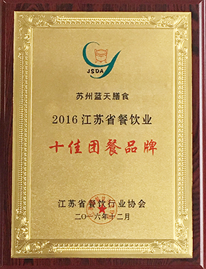 2016年12月中旬,在省餐饮行业协会举办的十佳团餐品牌的选举中,我司荣获了“2016江苏省餐饮业十佳团餐品牌”的荣誉称号,这也是我司连续三年获此殊荣。
