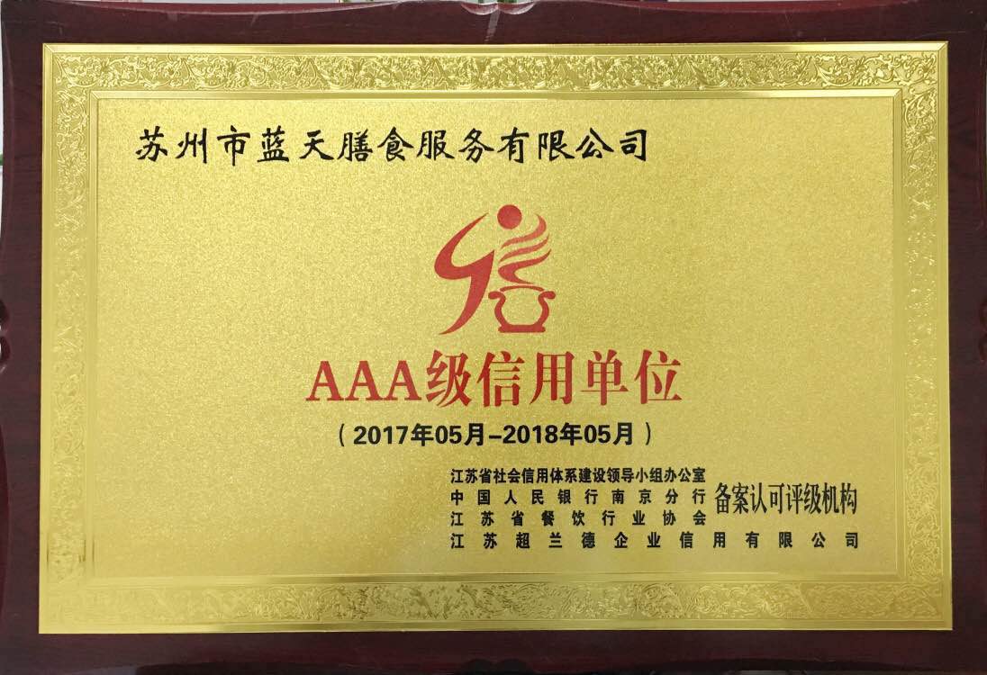 会上还表彰了第二批获得全省餐饮服务单位(含首批团膳企业)信用等级证书牌匾单位,本次的获奖单位是从近400家报名单位中筛选得出,我司很荣幸获得“AAA级信用单位”,这是对我公司在推进信用建设体系期间工作的肯定,今后我司也会继续保持,不断改进,为营造省餐饮行业诚实守信良好的环境贡献一份力。