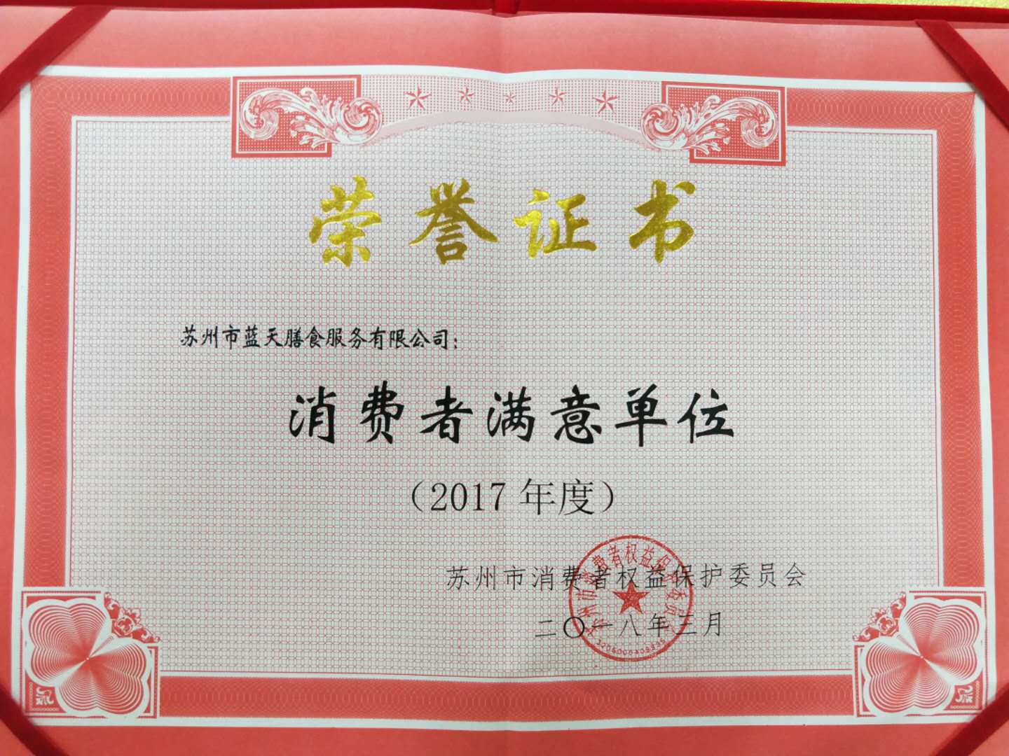 蓝天膳食获苏州市“消费者满意单位”表彰